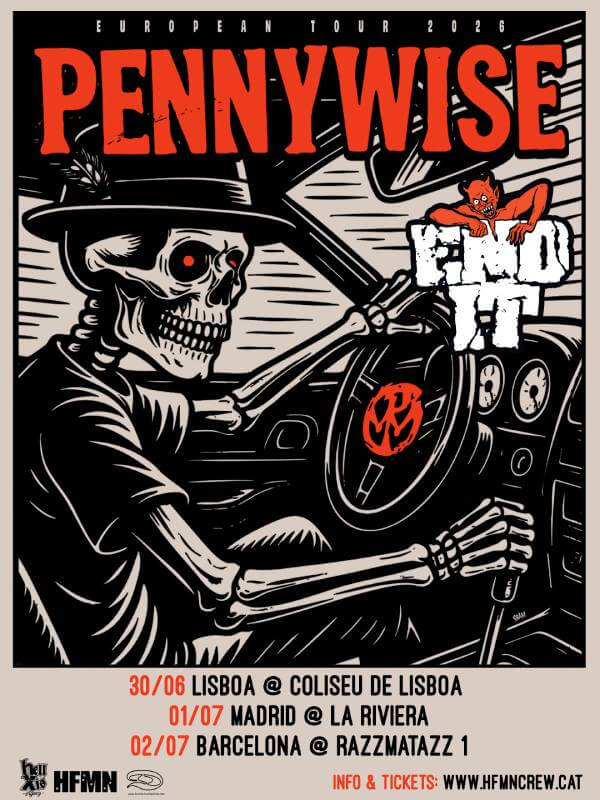El grupo Pennywise formado por Jim Lindberg (voz), Fletcher Dragge (guitarra y voz), Randy Bradbury (bajo y voz) y Byron McMackin (batería y voz) ofrecerá dos actuaciones en directo en nuestro país la próxima primavera. Los conciertos tendrán lugar los días 1 y 2 de julio de 2026 en Madrid (La Riviera) y Barcelona (Razzmatazz).